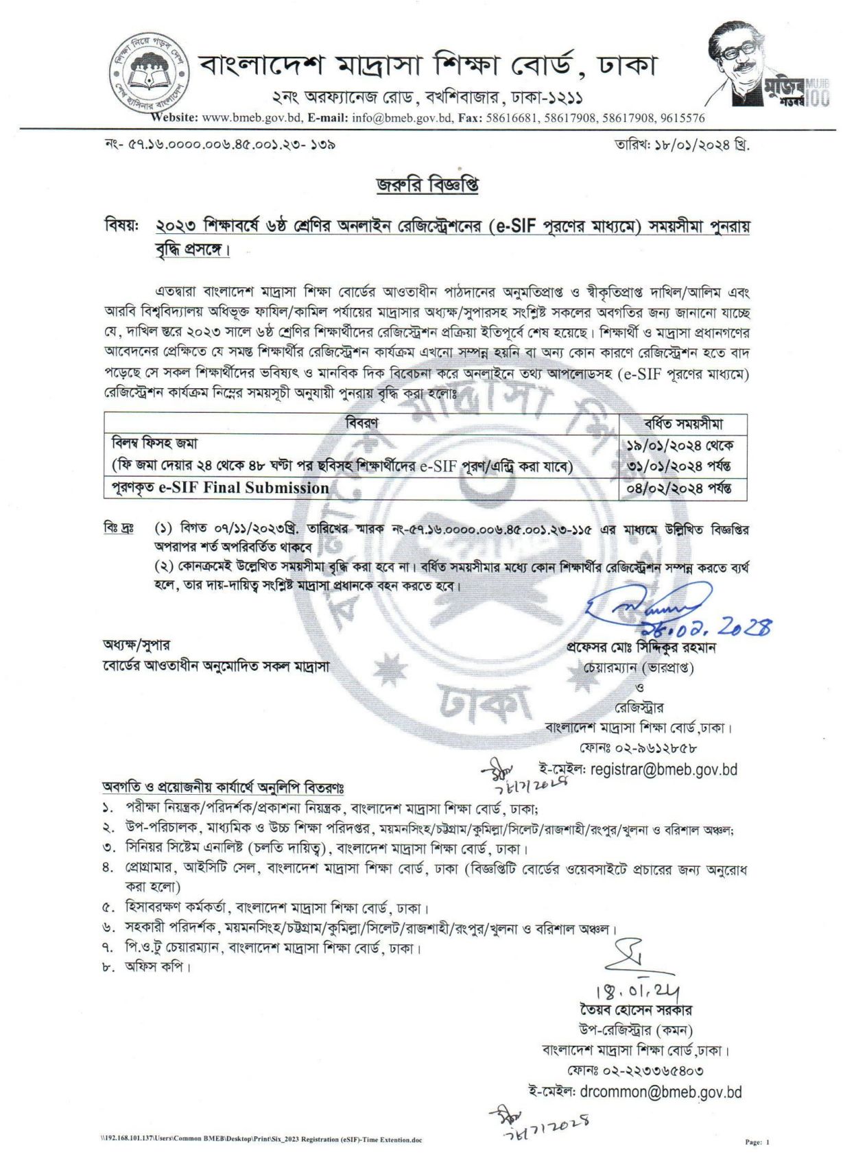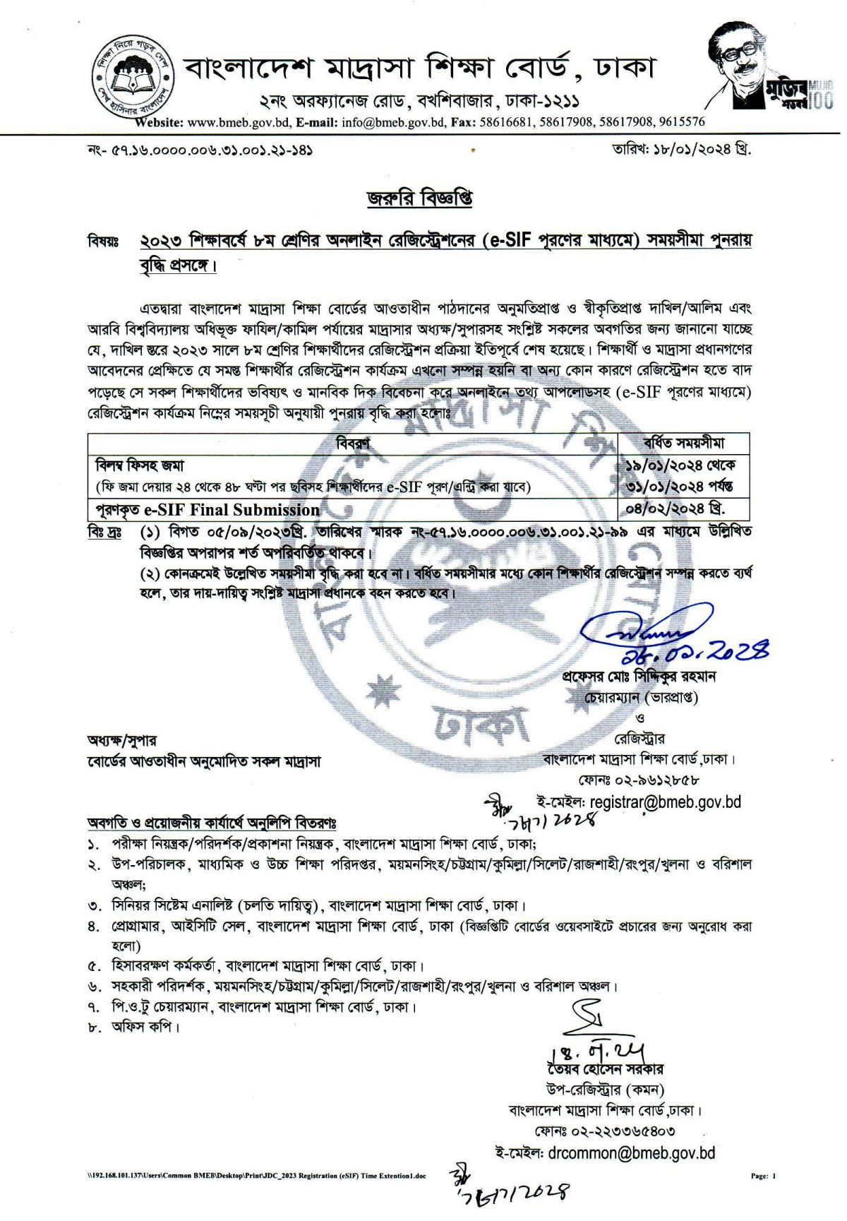 মাদ্রাসার শিক্ষক-কর্মচারীগণের এমপিওর আবেদন অনলাইনে প্রেরণের সময়সূচি সংশোধন সংক্রান্ত। |